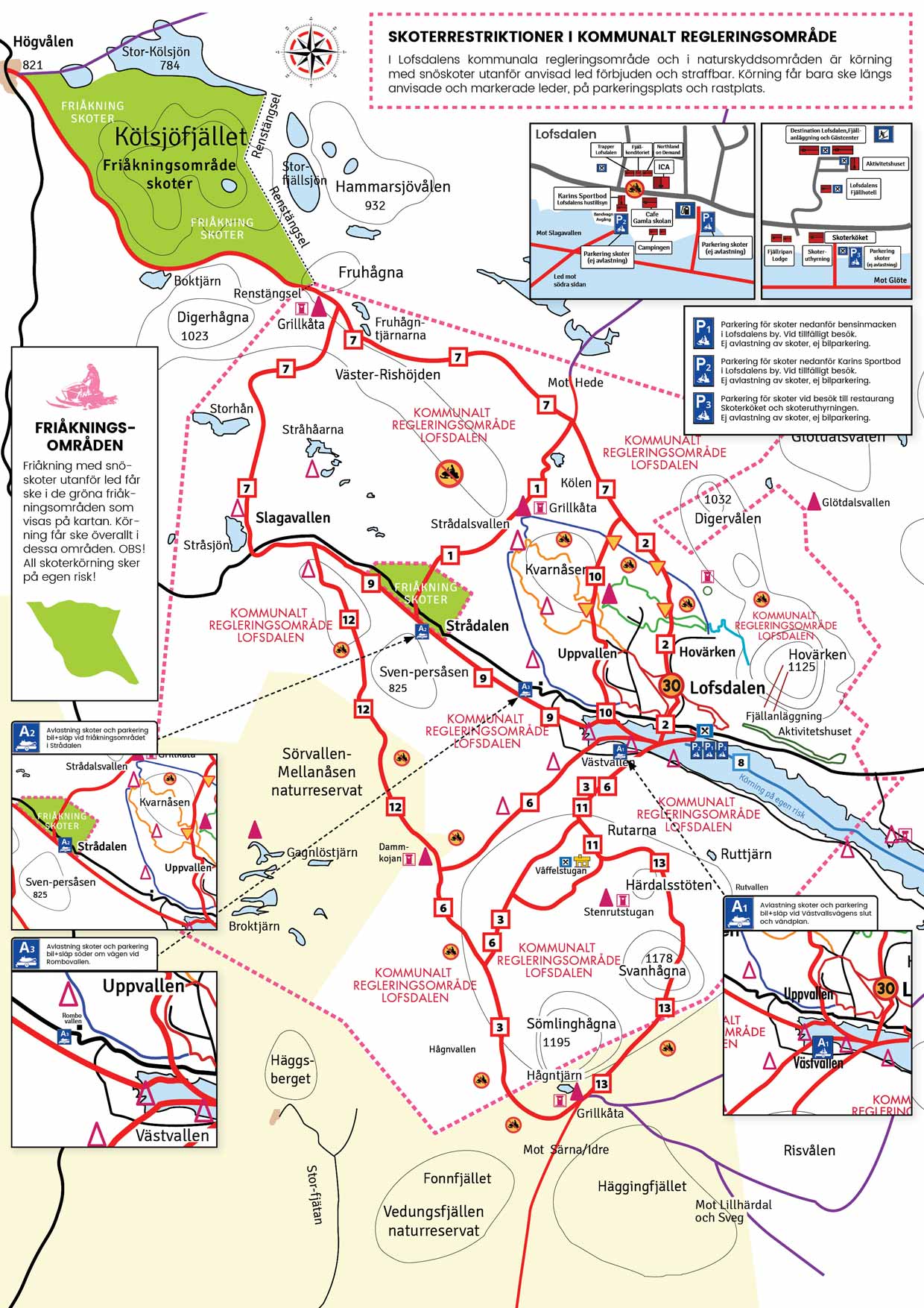 Längd: 5,8 km. Skoterled från Lofssjön upp norrut och väster om Uppvallen. Tänk på att ni kör skoter i ett friluftsområde med flera korsande skoterleder. Visa hänsyn och skoteråkare har alltid väjningsplikt.